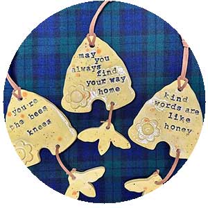 Handcrafted nature and literature-inspired ceramics for home and garden décor, plant markers, ceramic buttons, scarf rings, etc.